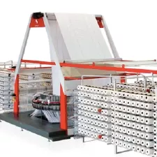 métiers circulaires pour tissus de 600 à 4.500 mm de large (coupé), et des vitesses de production allant de 750 à 1.000 duites/minute.