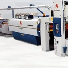 lignes d'extrusion pour bandelettes PP ou PEHD et PELLD avec filières jusqu'à 1.500 mm de large, vitesse de 520 m/min et capacité de 700 kg/h.